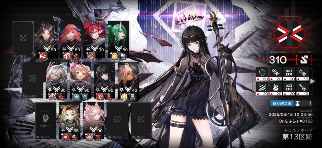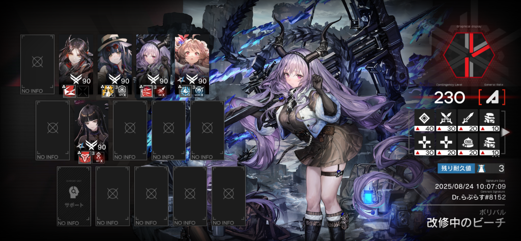 #2は置くだけ編成を参考にしようとすると必要オペが2体足りず、ステルス辺りの処理をトター育成したりして無理やり、自己アレンジで頑張ってた。よくやってたと思う(何様)。