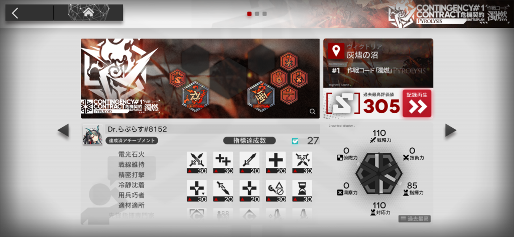 改修前危機契約をやったことがなく、危機契約初参加だった#1は、自力で指標を観たりして305点までやってた。