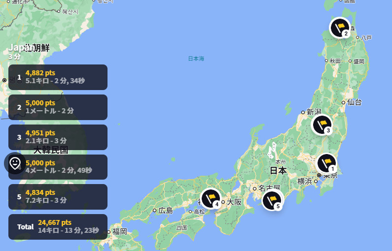 日本マップを3分でやるモードで毎回やってるけど、なかなか自分の最高点を越せなくて悔しい。