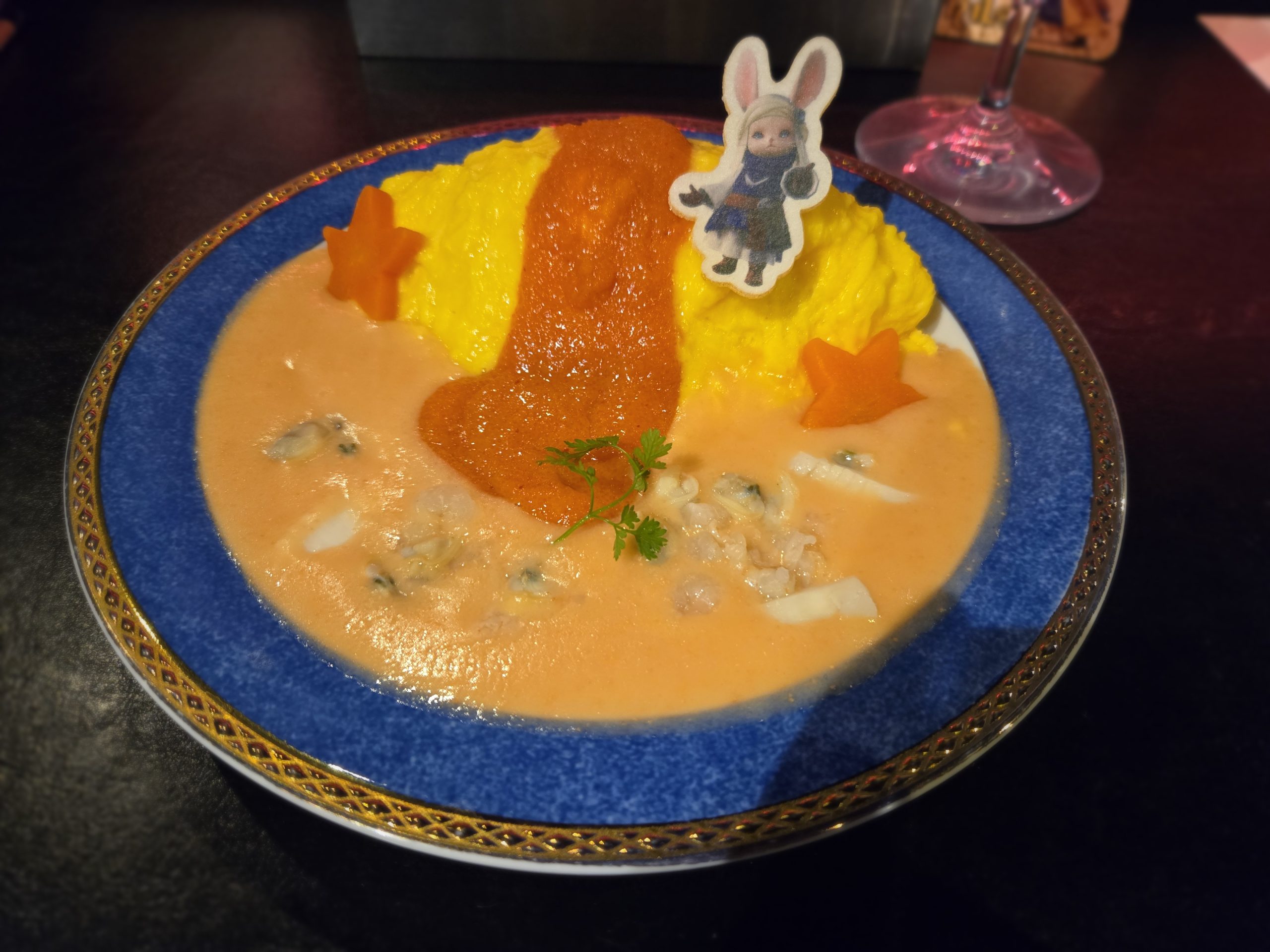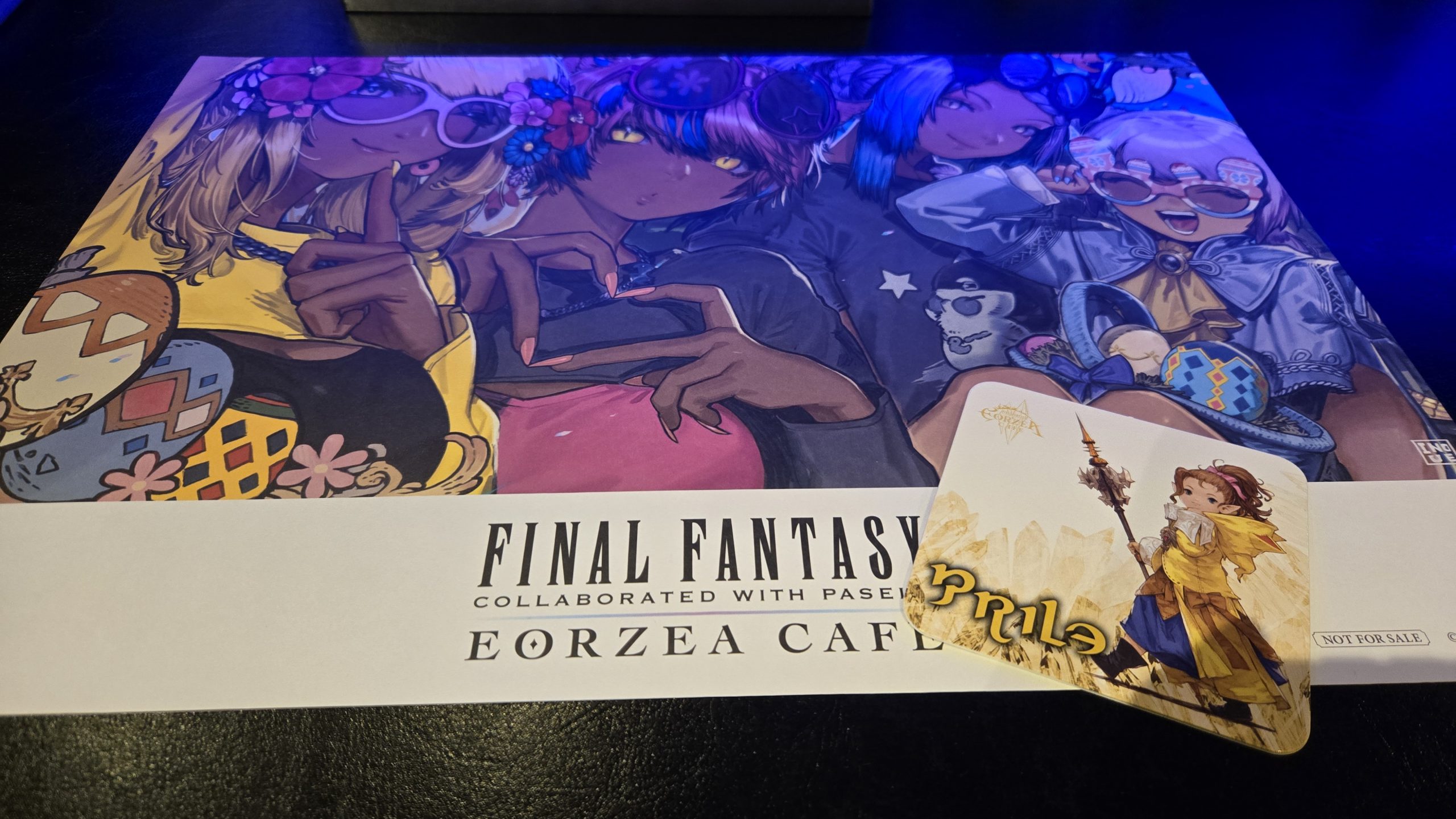 今年のエッグハントのイラストが良すぎて平日エオルゼアカフェ😎 ウェルカムコースターのクルルさんと目的のランチョンマット~