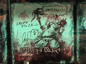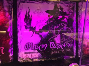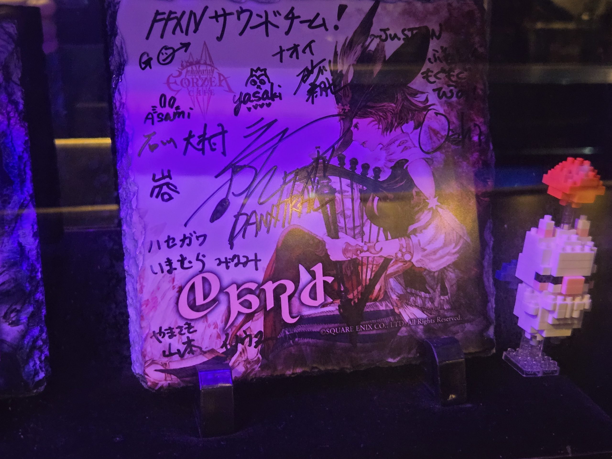 今回初めてカウンター席に当たって、正面にあるジョブ石版にサインがあるのに気付いた(ちょっとライトが当たって見づらいけど……)。これはサウンドチームらしい